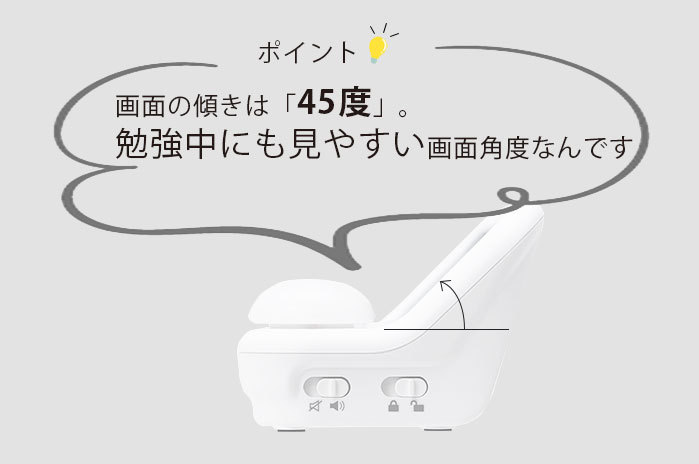 45度の見やすい画面角度と青色LEDで使いやすさを追求