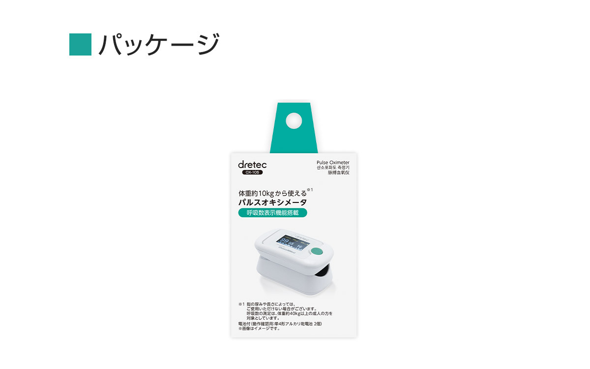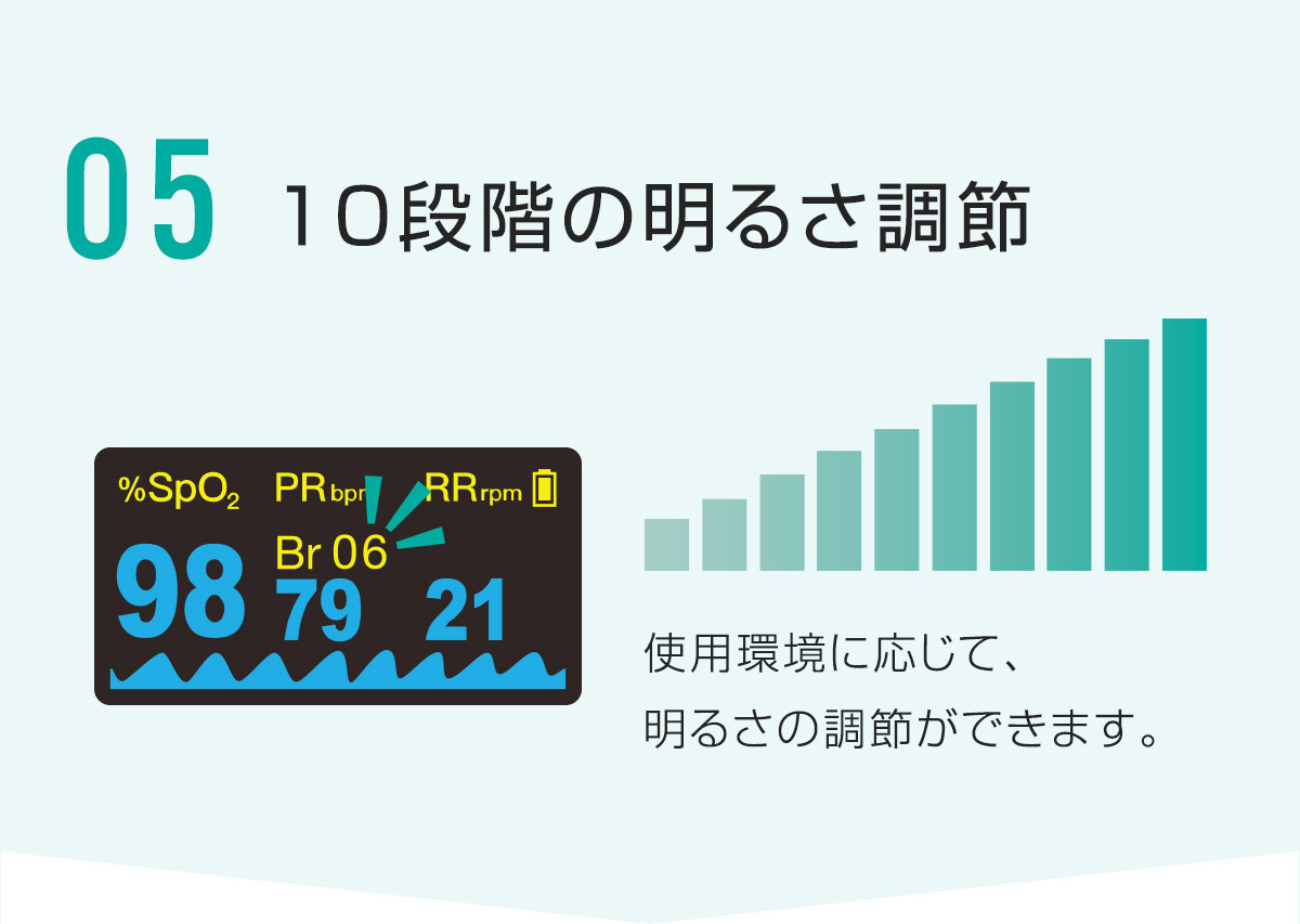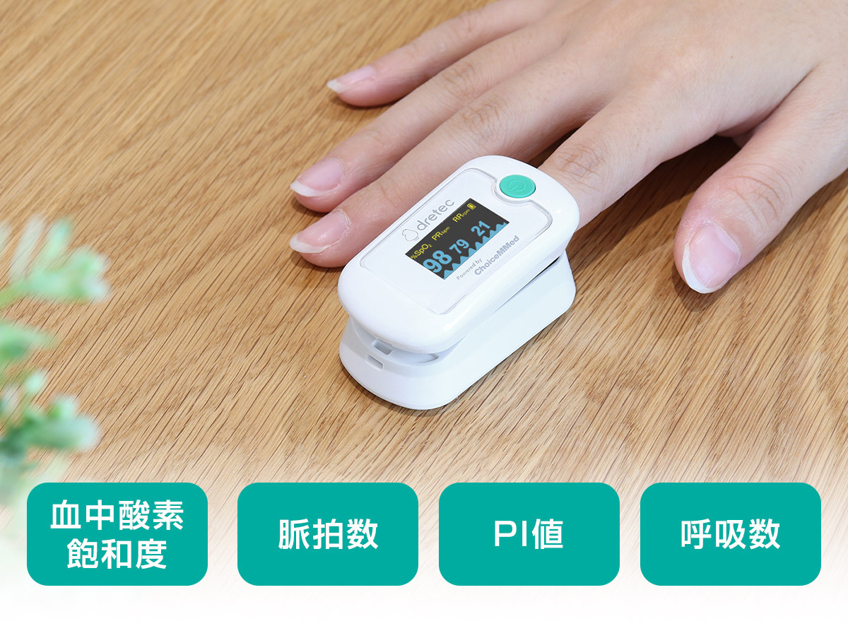 呼吸数表示機能付きパルスオキシメータ。