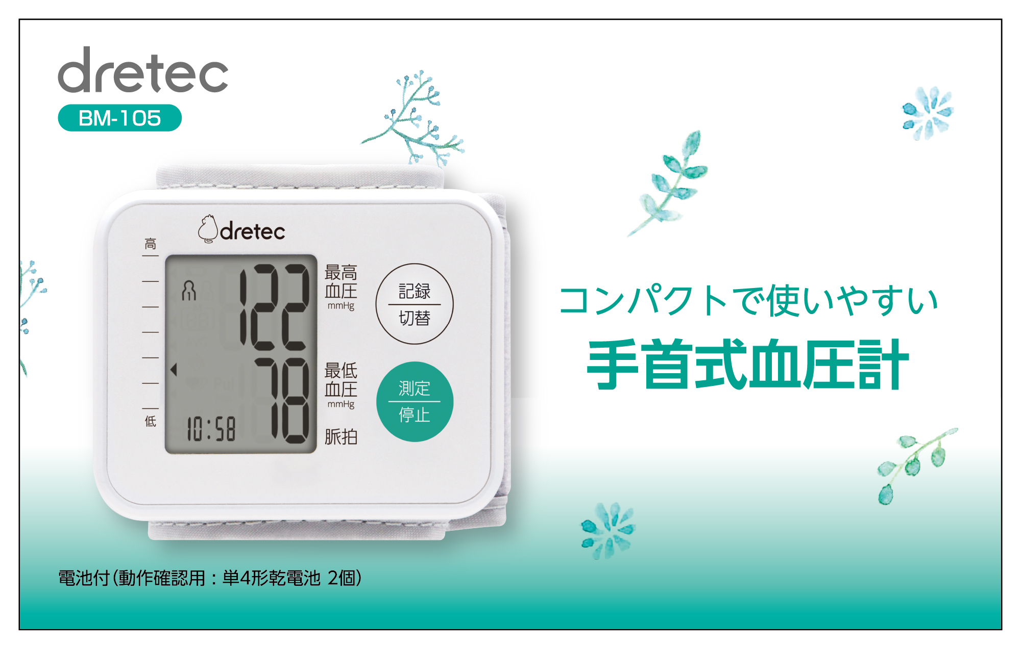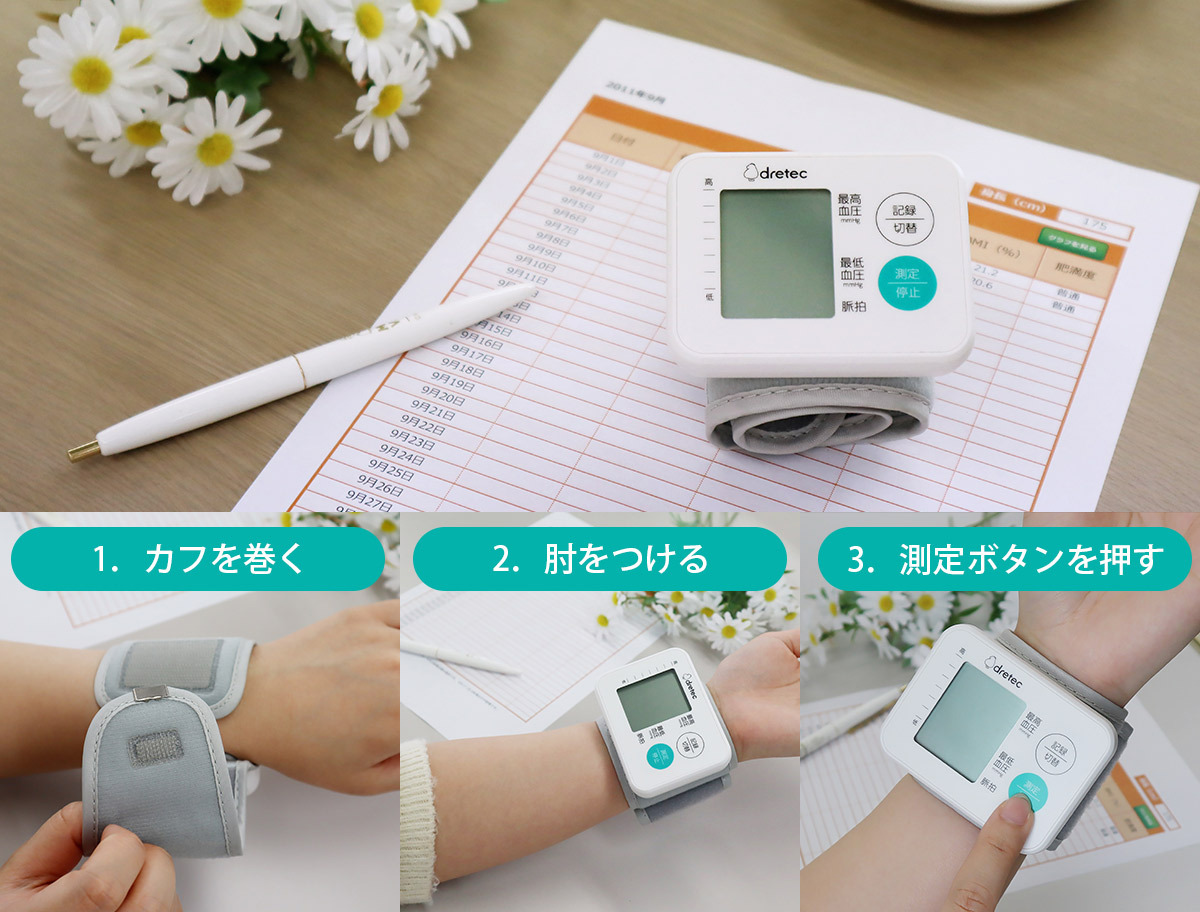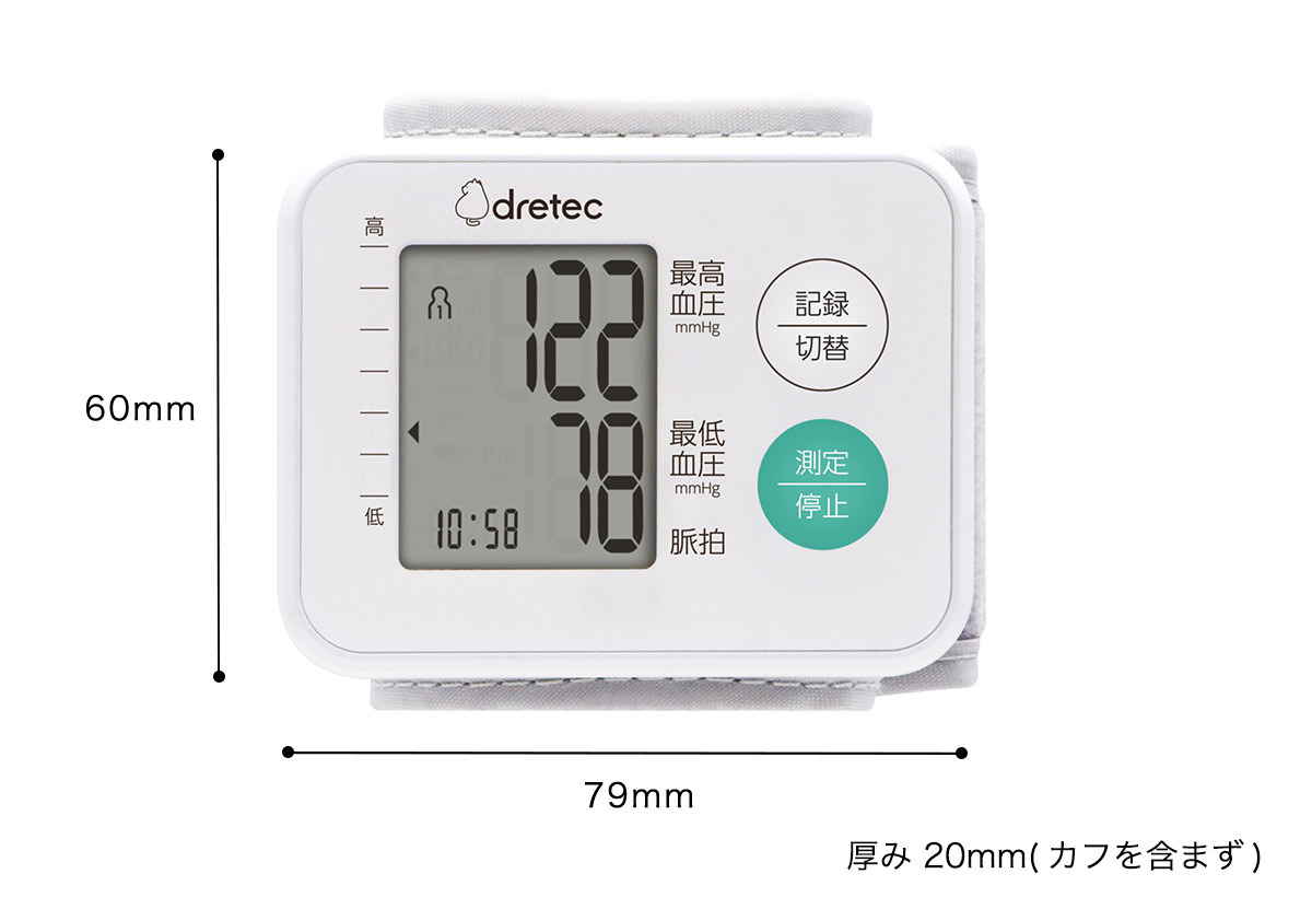 【D】ドリテック 手首式血圧計 ホワイト