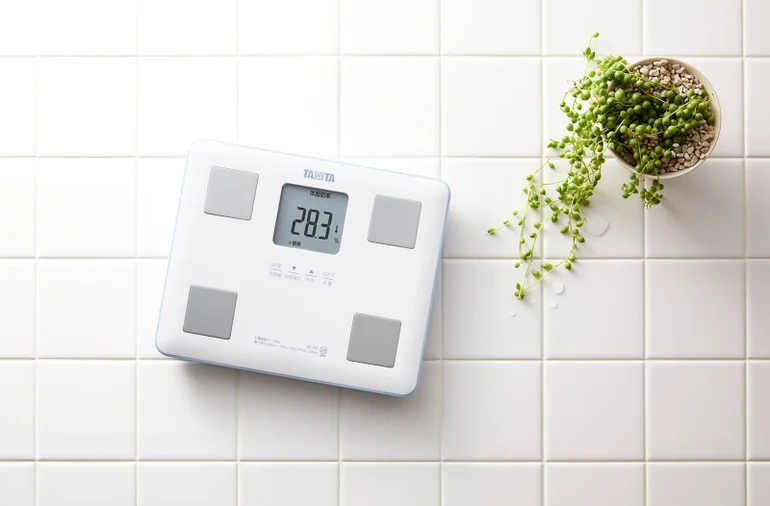 約26cm×21cmのコンパクトな設計ながらも、体脂肪率、BMI、筋肉量、