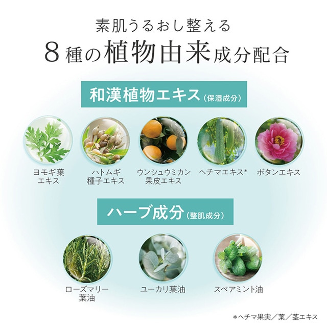 天然クレイ、和漢植物エキスで余分な汚れや角質を落とし、なめらかな肌に整えます。