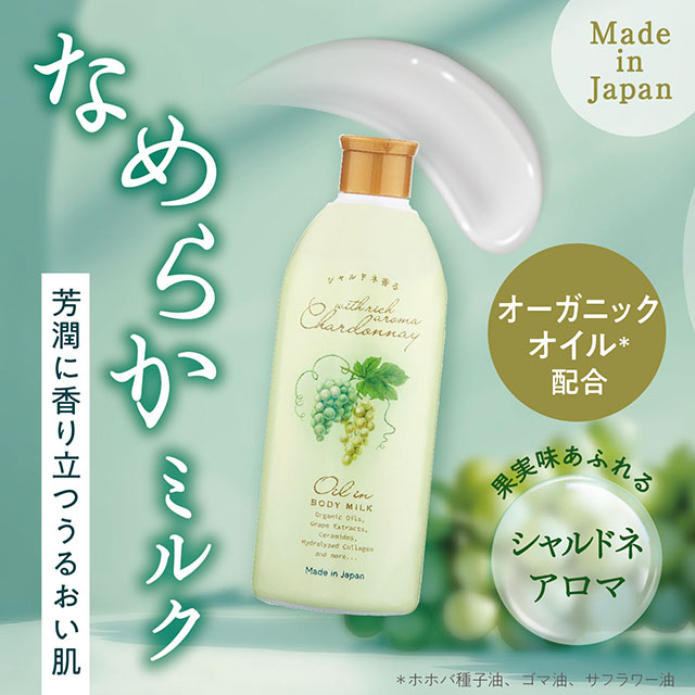 香り高いアロマと、なめらかでみずみずしいテクスチャーが心地良いボディーミルク。