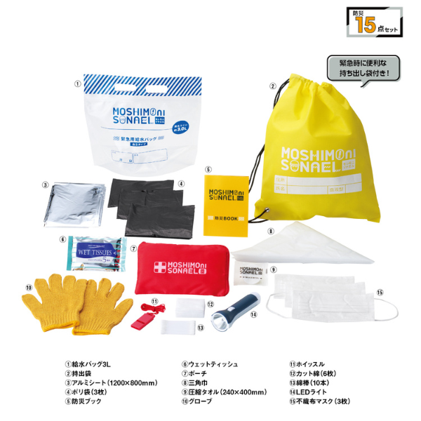 【E】モシモニソナエル 防災15点セット