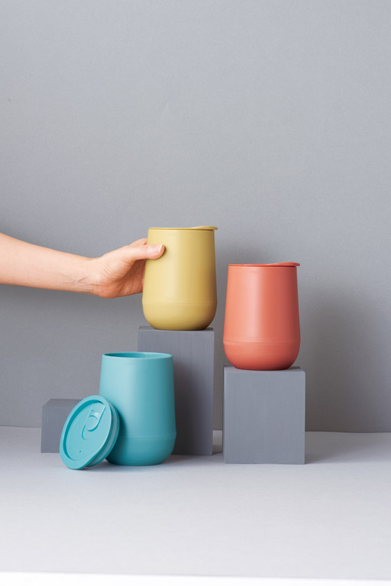 コロンと丸みを帯びた形状が新しい、軽くて冷めにくい二重構造の樹脂製タンブラー。
