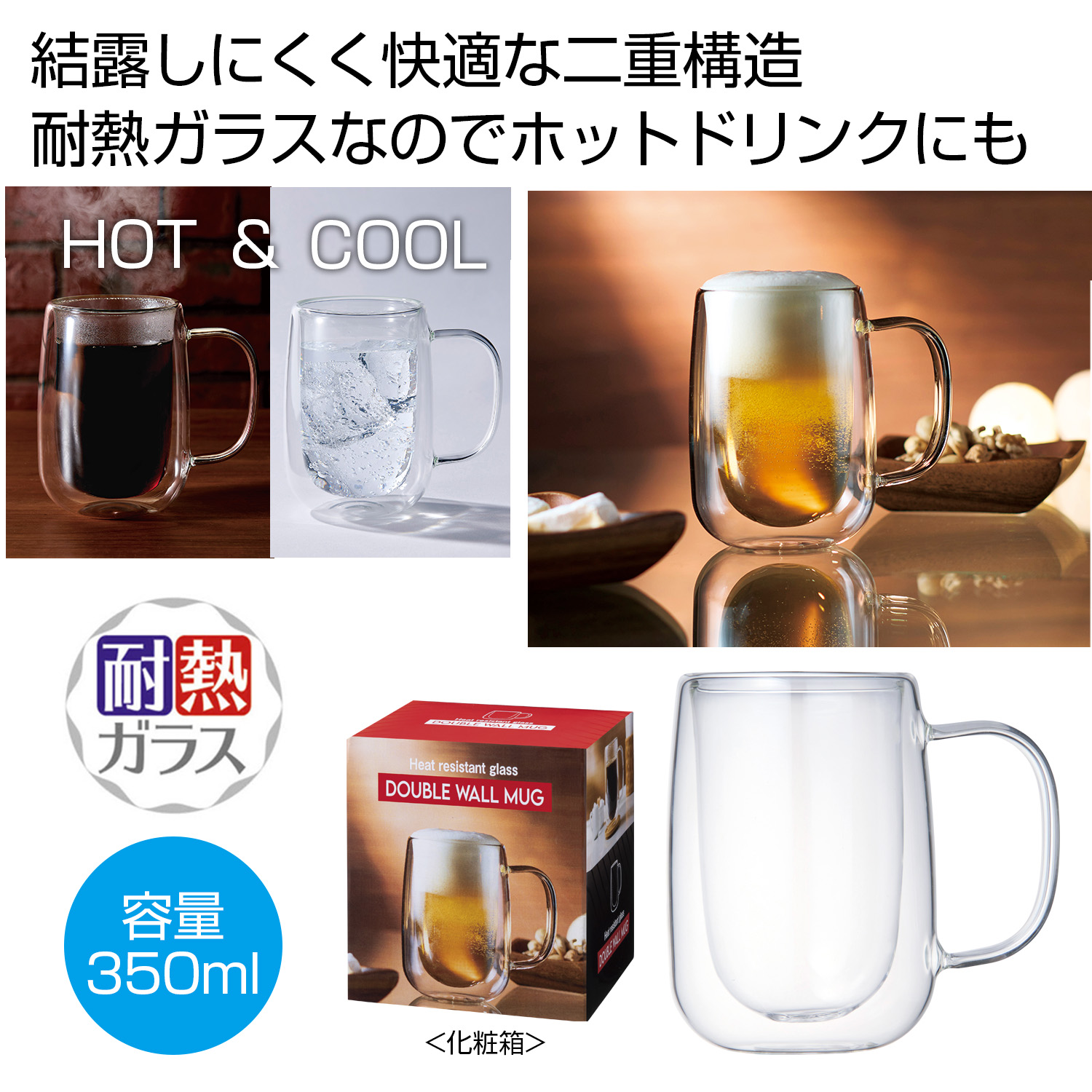 二重構造の耐熱ガラスで結露しにくいジョッキ