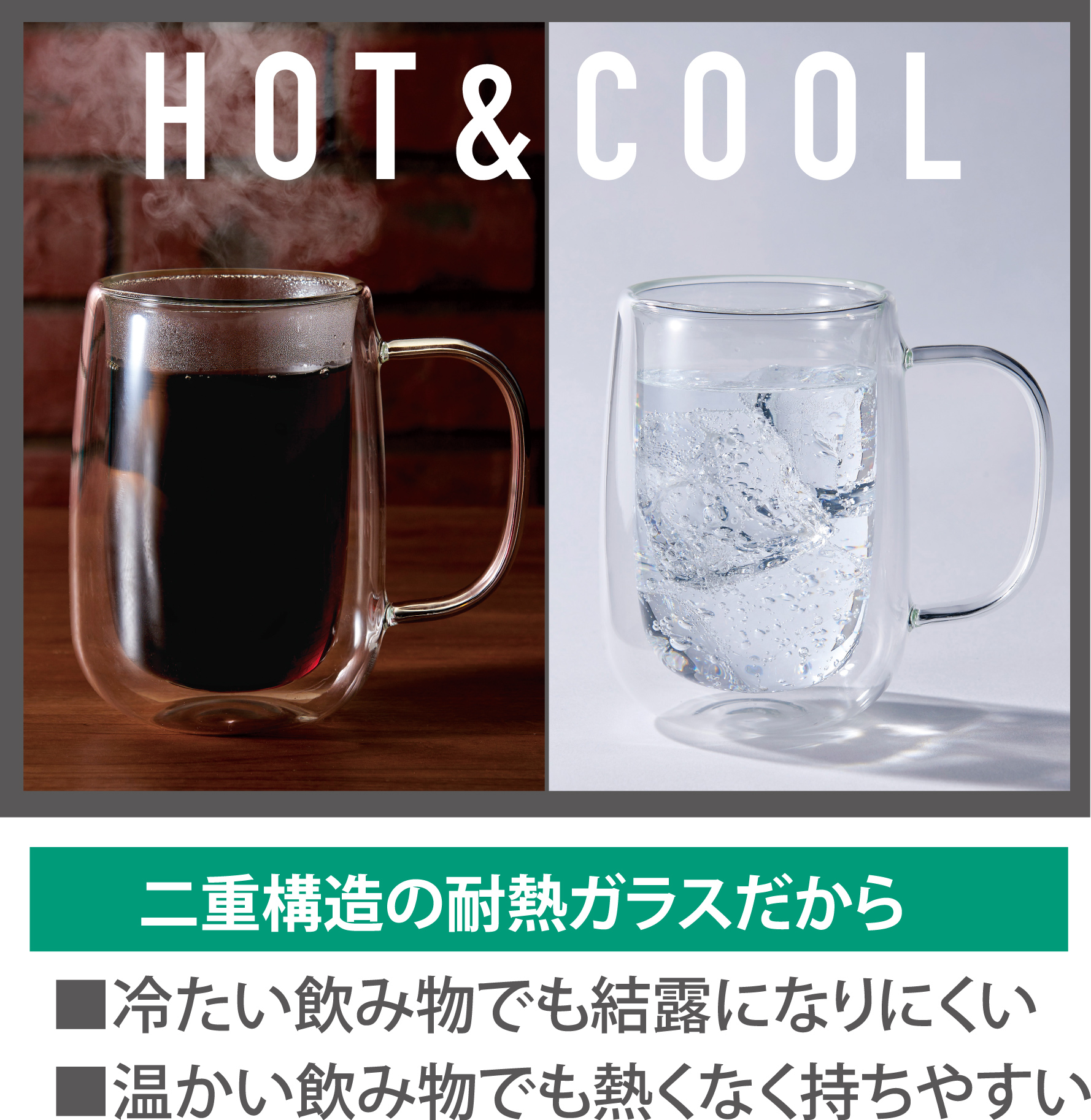 冷たいビールも熱いコーヒーも、二重構造の耐熱ガラスで結露しにくく持ちやすい設計に加え、まるでドリンクが宙に浮いているような美しい見た目も魅力。