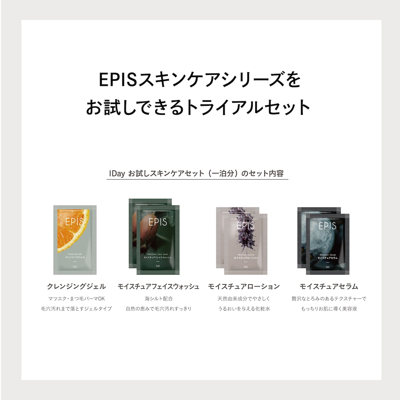 EPISスキンケアシリーズをお試しできる便利なアイテム。