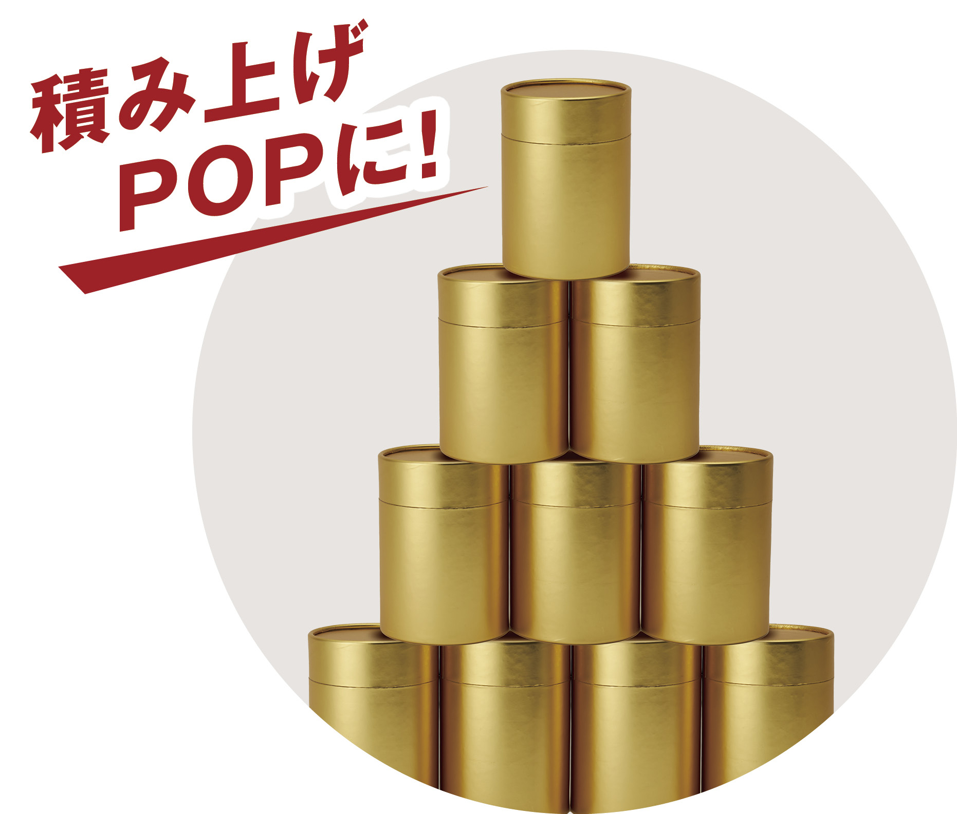 積み上げ展示で抜群の存在感を放つディスプレイアイテムです。