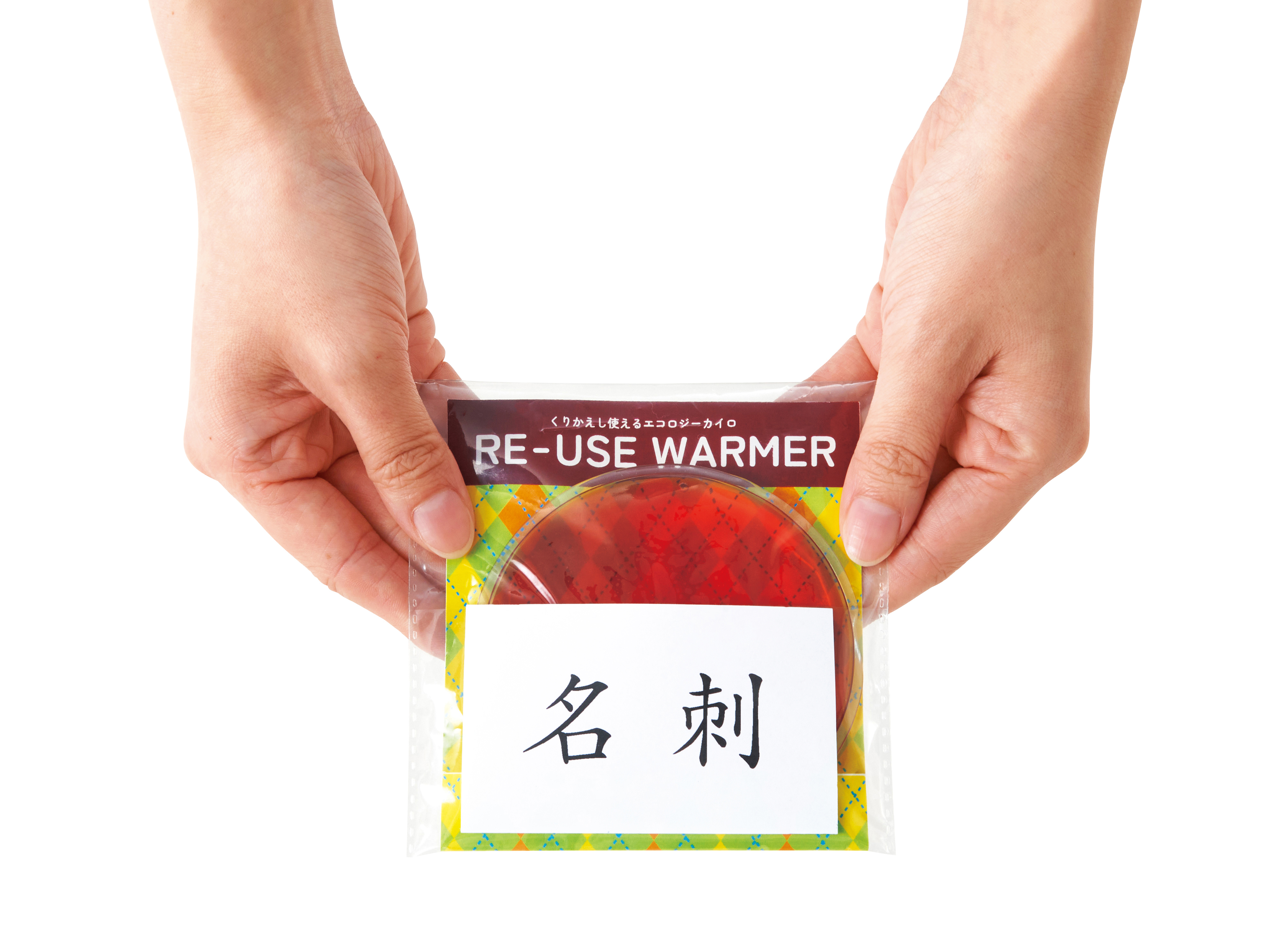 名入れ可能でエコなカイロは、個包装袋に名刺ポケットつき。
