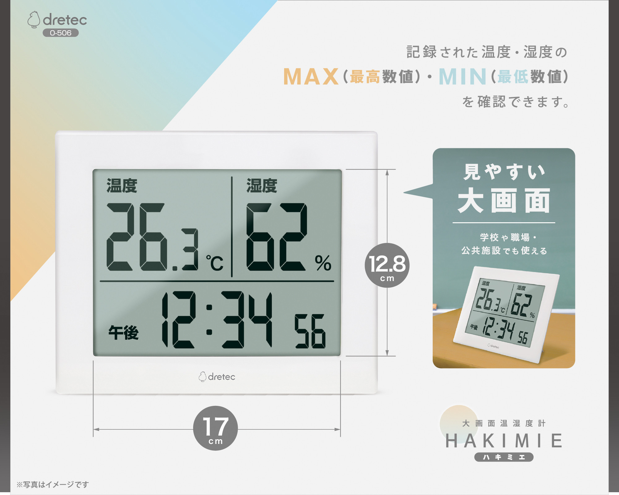 離れた場所からもはっきり見やすい大画面温湿度計