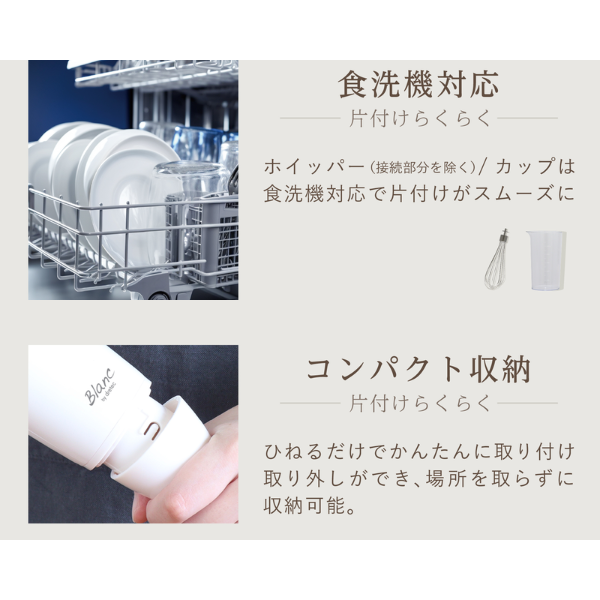 ・カップとホイッパー(接続部を除く)は食洗機対応