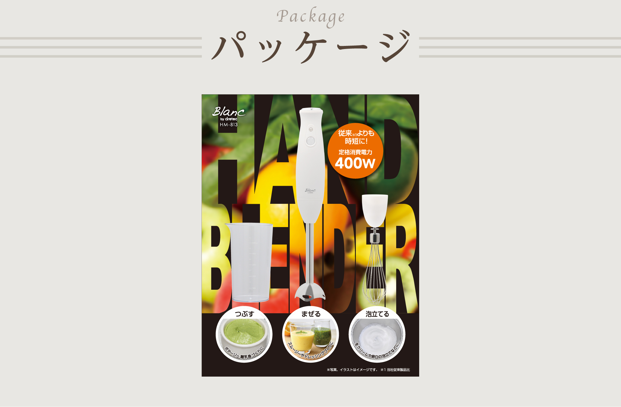 ・「ブレンダー」「ホイッパー」がかんたんに付け替えできる