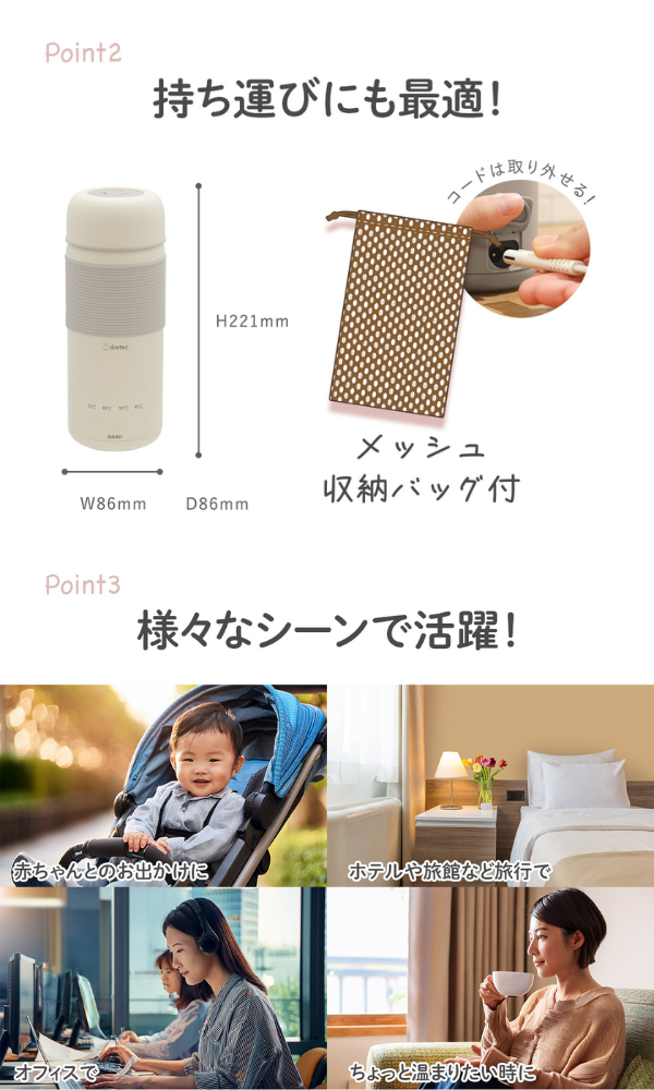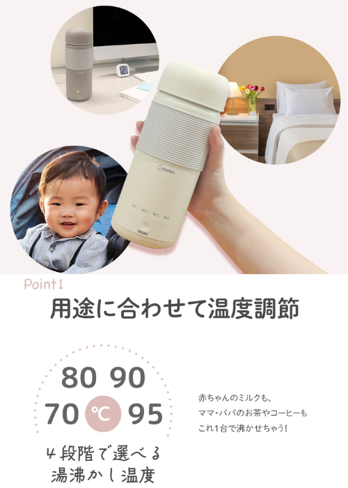 赤ちゃんのミルクも旅先のドリンクも、これ1台で!