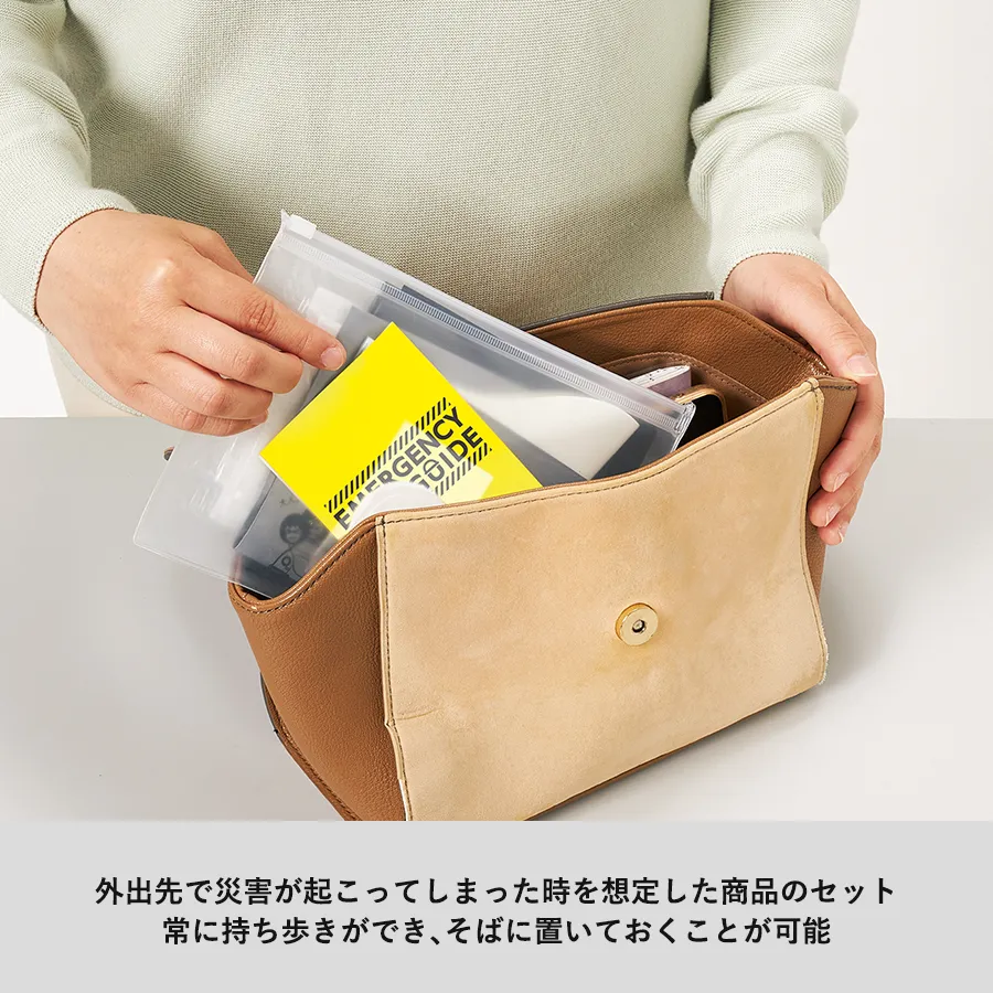 外出先で災害が起こってしまった時を想定した商品が入っています。
