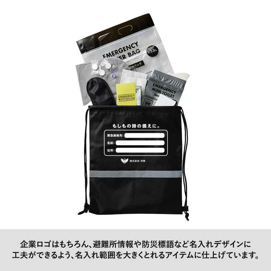 名入れもでき、災害時に外に簡単に持ち出せる、