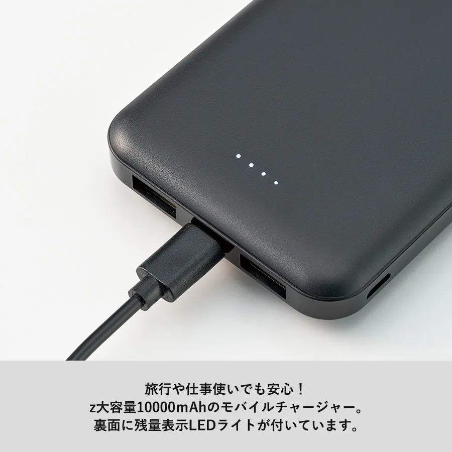 出先でも安心な10000mAhの大容量タイプです。