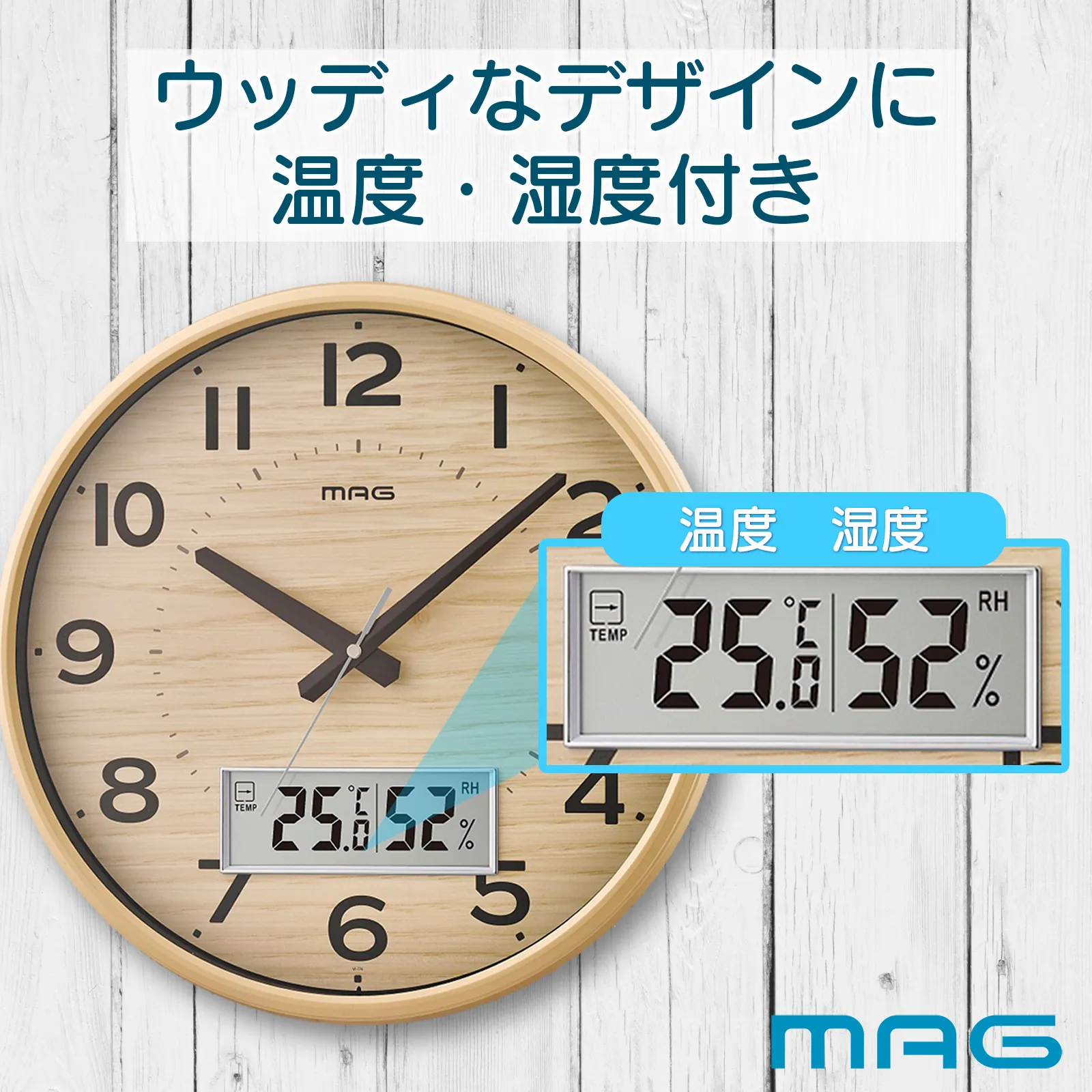 日々の生活環境に必須情報となってきた「温度湿度」を表示できる便利な掛時計。