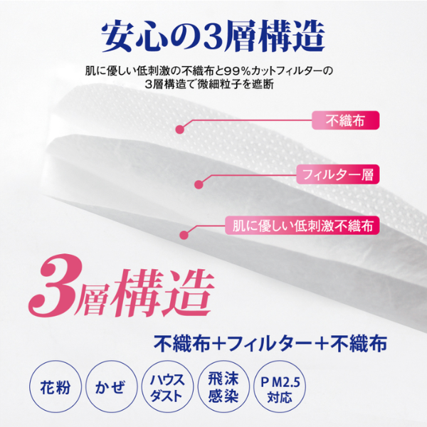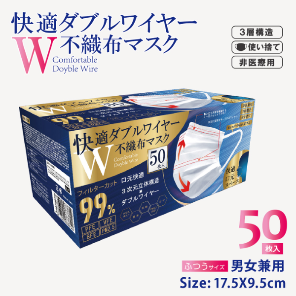 【K】快適ダブルワイヤー不織布マスク 50枚入