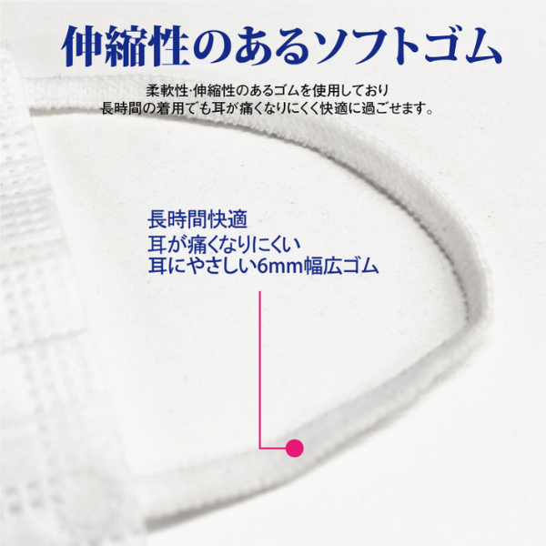 耳ゴムも広めの6㎜で耳も痛くなりにくい!