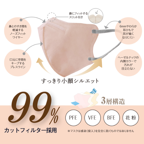 ・安心の3層構造、99%カットフィルター採用(PFE/VFE/BFE/花粉)