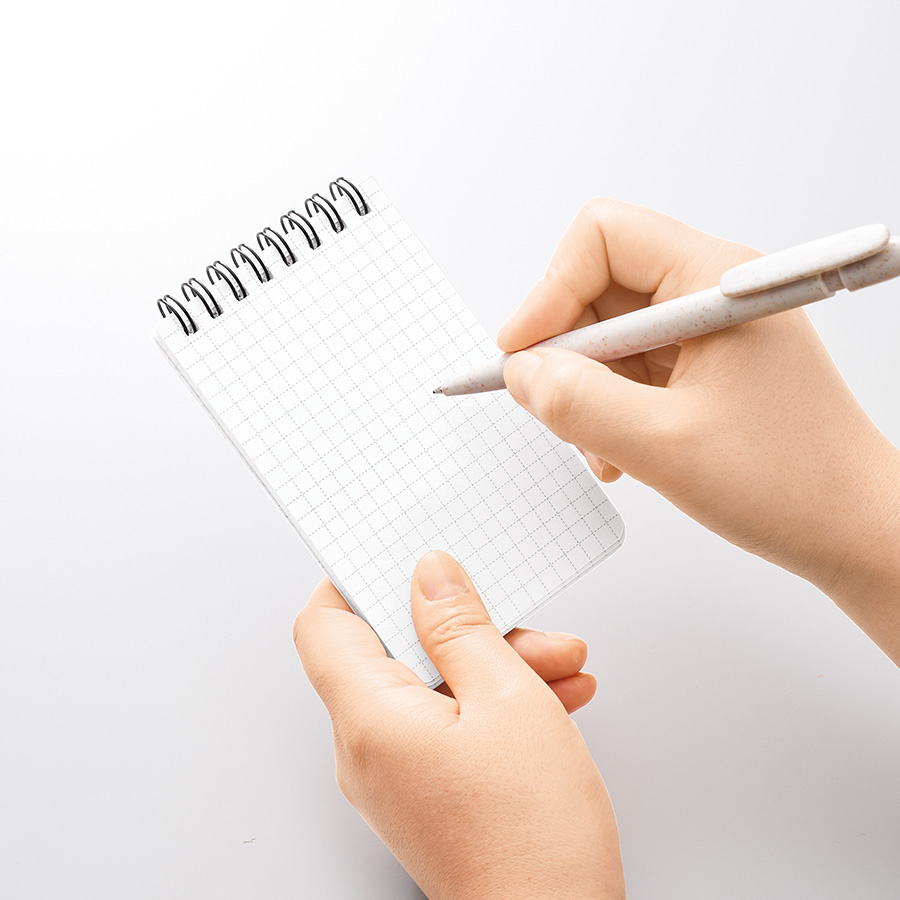 表紙にエコ素材の麦わらを25%配合したリングメモです。