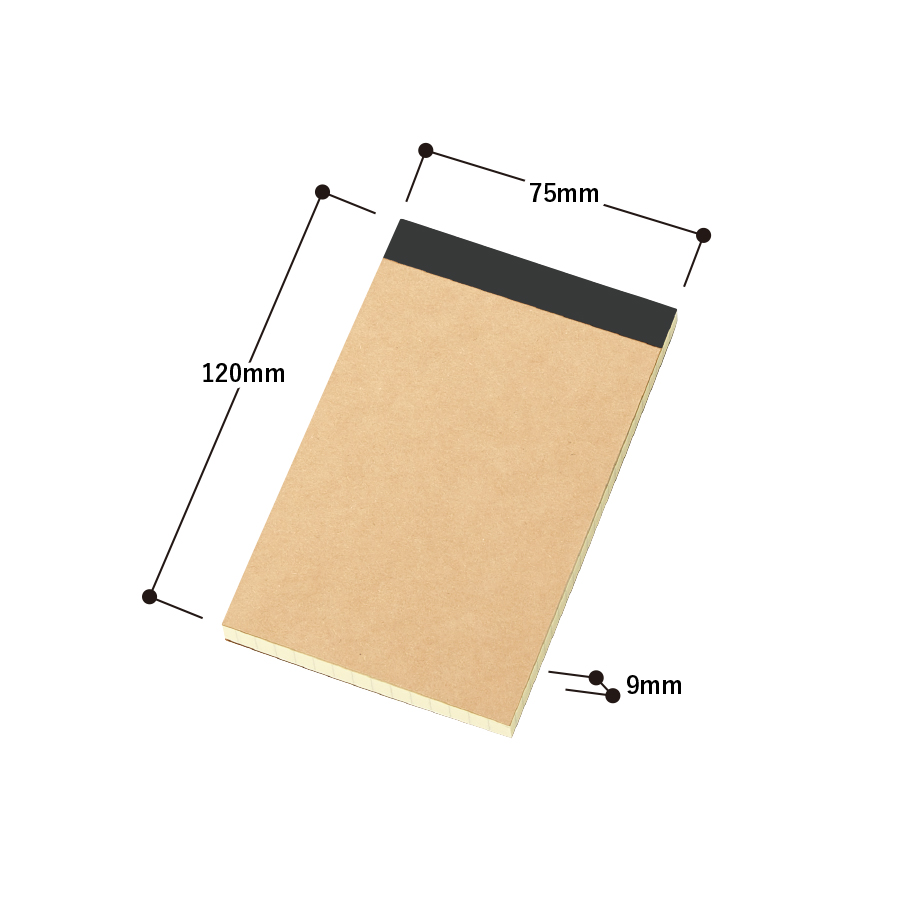 再生紙の温かみあるカラーが特徴的なA7サイズのメモ帳です。
