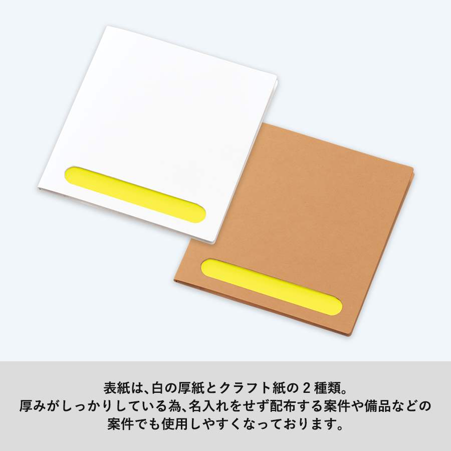 表紙は窓付きで、はっきりとした蛍光色のふせん紙が見えるデザインです。