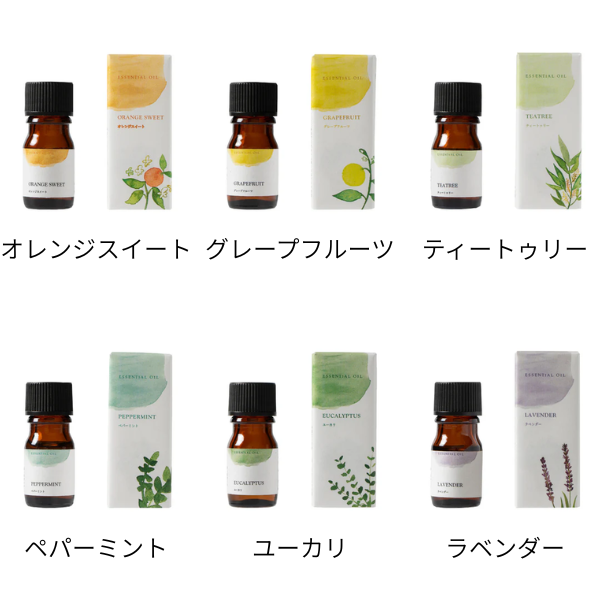 ひと目で精油の種類が伝わるようハーブのイラストが入ったパッケージです。