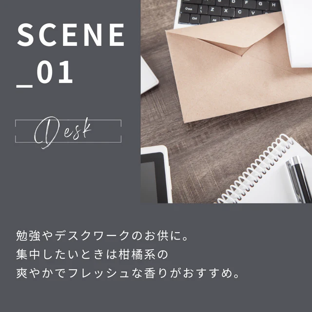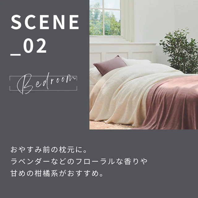枕元やデスク周りなど、パーソナルスペースでふんわり香ります。