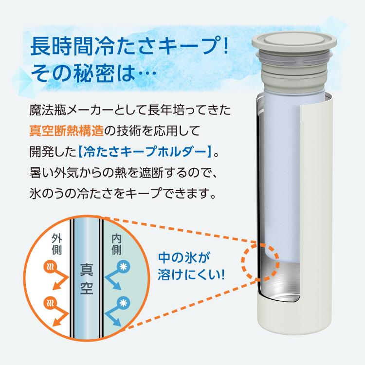 ・ステンレス真空断熱構造でしっかり外気温を遮断し、氷のうの冷たさ長持ち