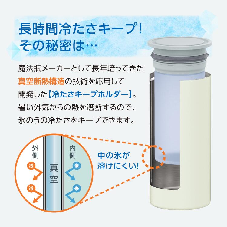 ・ステンレス真空断熱構造でしっかり外気温を遮断し、氷のうの冷たさ長持ち。